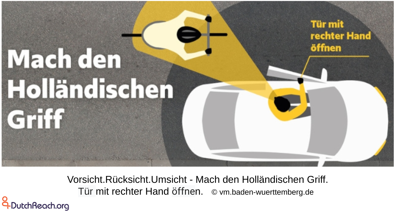 "Dooring"-Unfälle vermeiden - Verkehrssicherheitskampagne "Twist & Schaut" der ADFC & AGFK Bayern, 24 Sept 2020. [nb. Twist & Shout was a 1962 top hit in US, Lyrics: "Well, shake it up, baby, now / Twist and shout / Come on, come on, come, come on, baby, now / Come on and work it on out…"] Siehe auch hier.